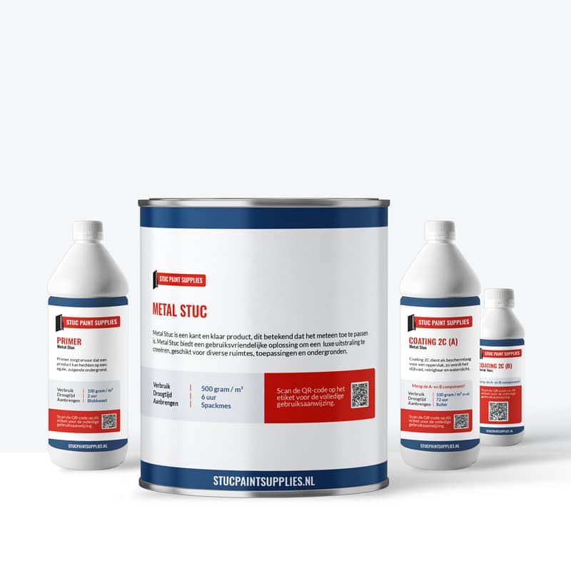 Wilt u het voor uzelf zo makkelijk mogelijk maken, dan raden wij aan om voor één van onze Metal Stuc pakketten te kiezen. Met deze pakketten kun je direct aan de slag! Of u nu een professional bent of voor het eerst zelf Metal Stuc wilt aanbrengen. Elk pakket bevat alles wat je nodig hebt: van primer en de Metal Stuc, tot de juiste sealer voor een duurzame afwerking. Zo weet u zeker dat er geen stappen worden overgeslagen, en u met de juiste materialen aan de slag kunt voor een perfect eindresultaat!